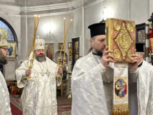 Його Преосвященству співслужило духовенство собору.
