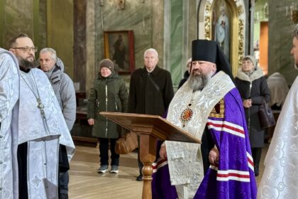Під час богослужіння лунали молитовні прохання за воїнів, які захищають Україну, за владу і наш народ та за спокій душ усіх полеглих оборонців Батьківщини й мирних жителів.