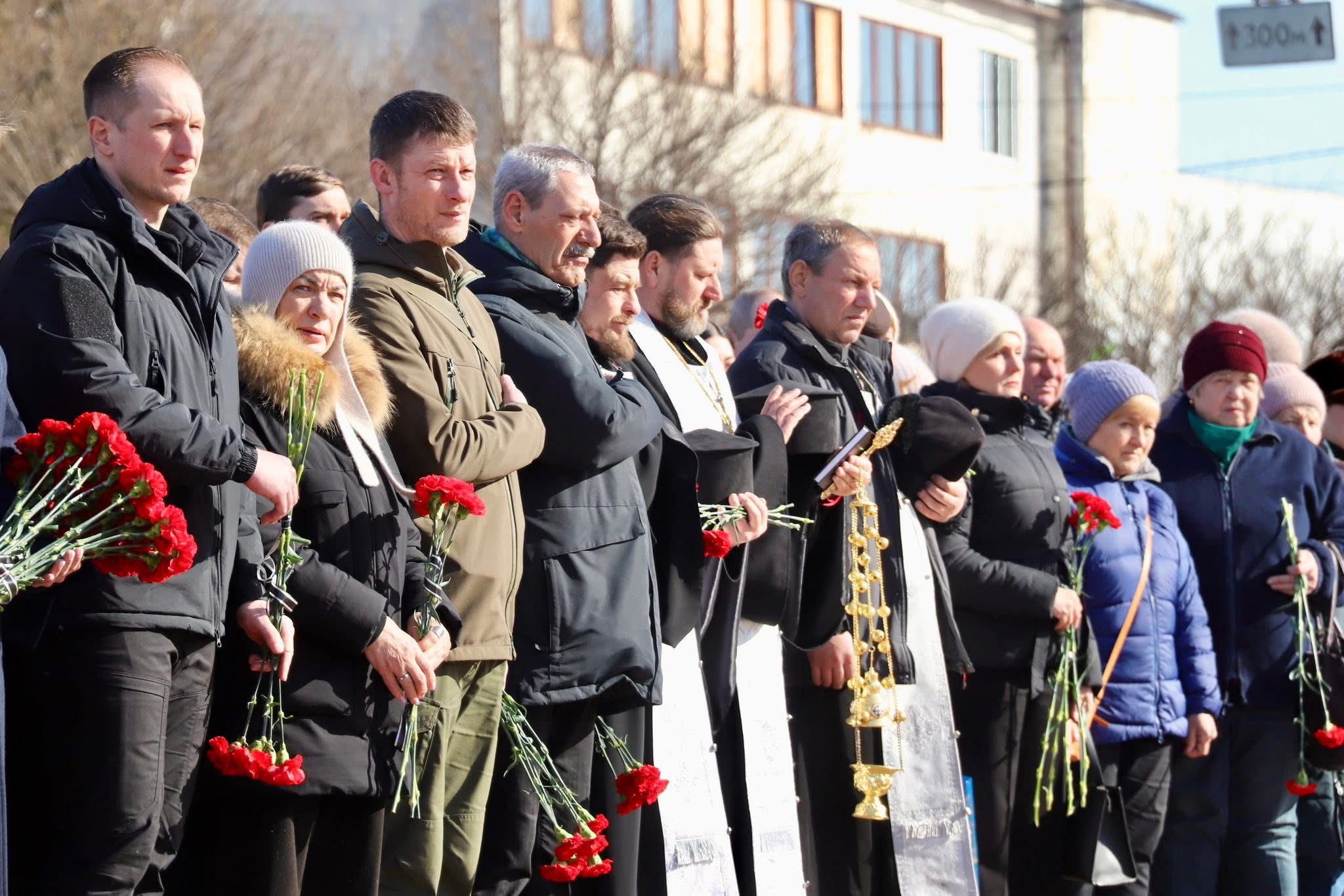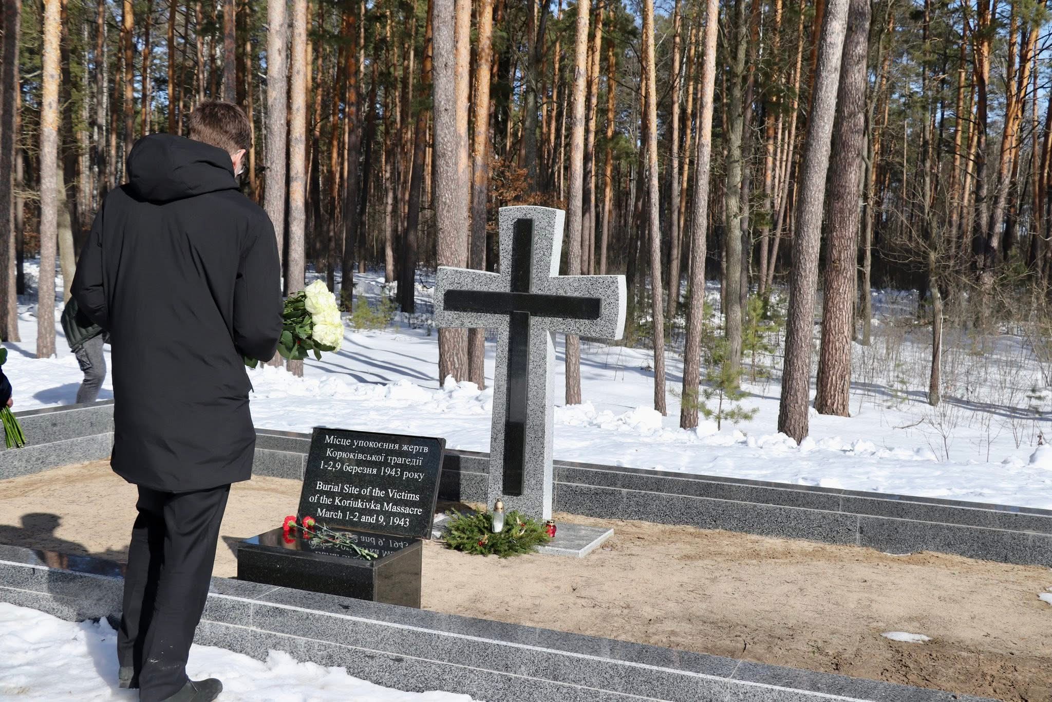 Далі продовжилися заходи поблизу каплиці в урочищі Гай, де і перепоховано останки жертв трагедії. На місці поховання відбулося покладання квітів.