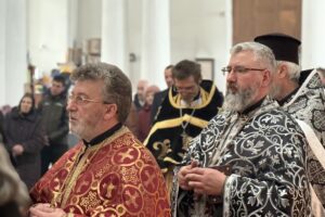 Під час богослужіння лунали молитовні прохання за воїнів, які захищають Україну, за владу і наш народ та за спокій душ усіх полеглих оборонців Батьківщини й мирних жителів.