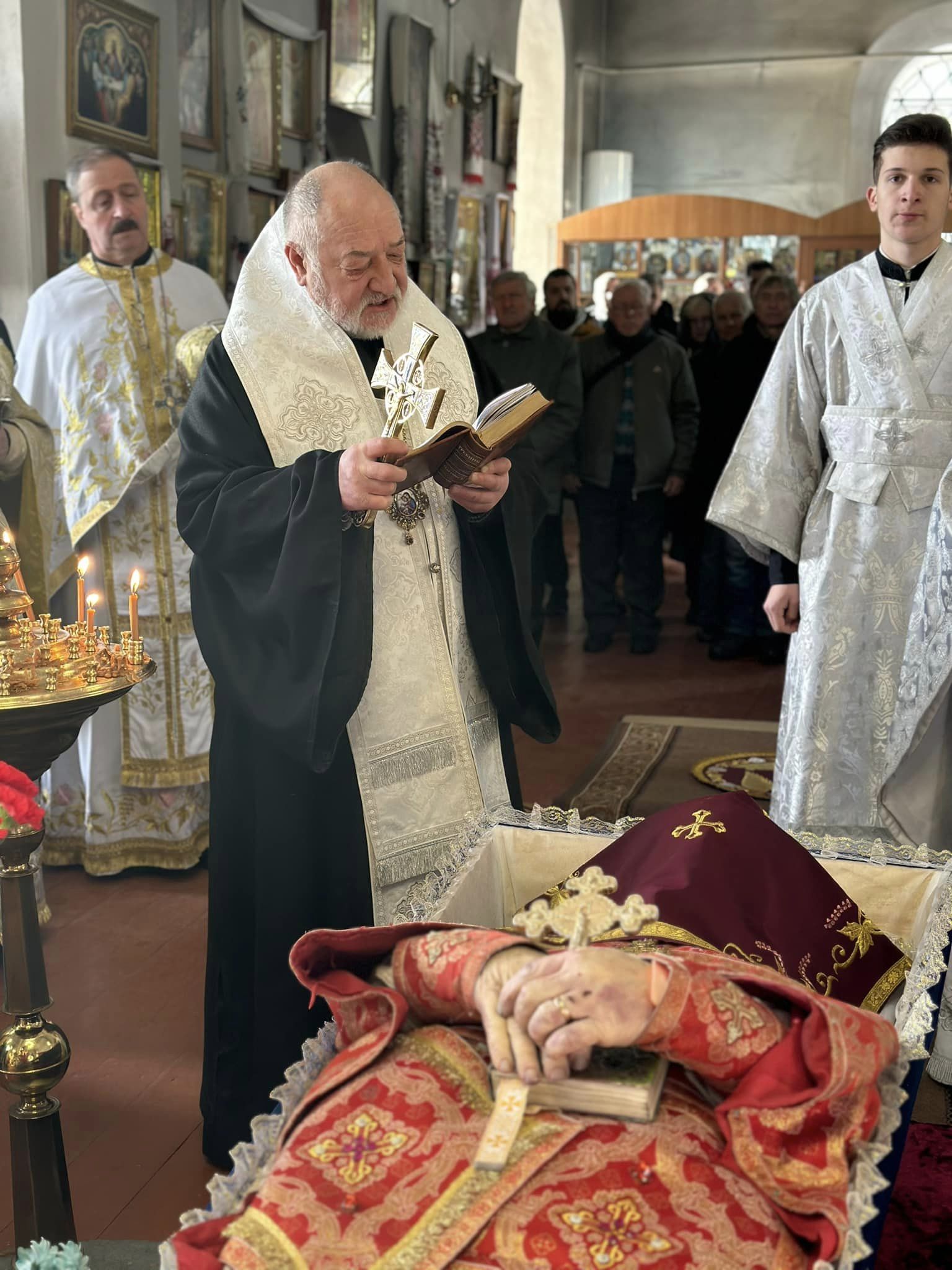 Після Літургії єпископ Антоній у співслужінні з єпископом Фастівським Володимиром звершив чин похорону новопредставленого протоієрея Петра Кириченка.