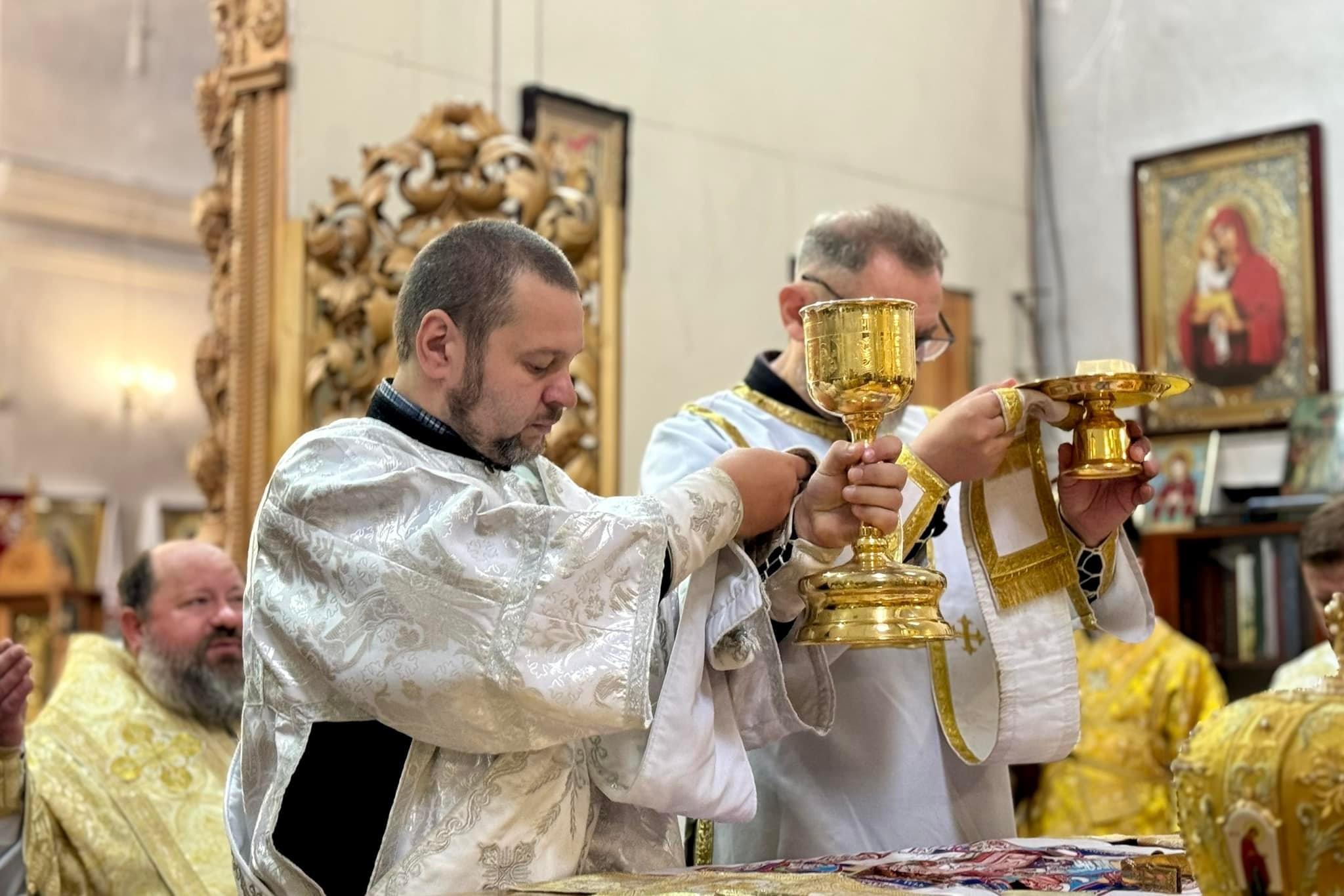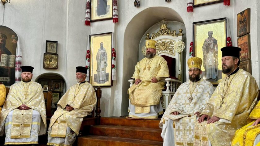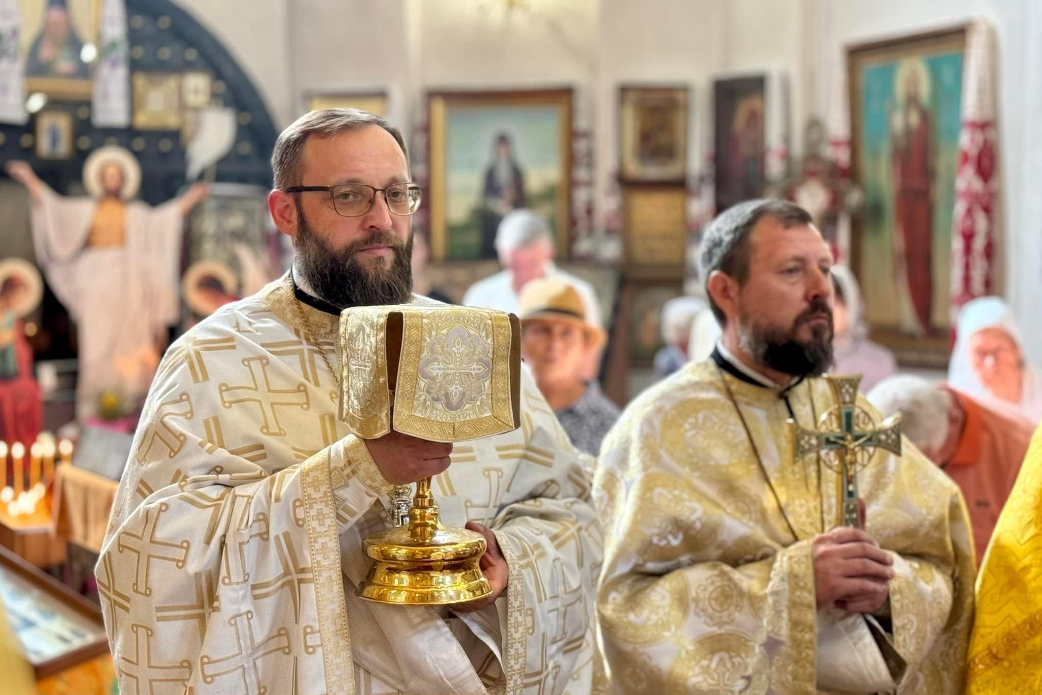 Його Преосвященству співслужили соборне та запрошене духовенство.