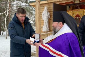 Після відправи владика, з благословення Блаженнійшого Митрополита Київського і всієї України Епіфанія, відзначив меценатів, які долучилися до будівництва каплиці.