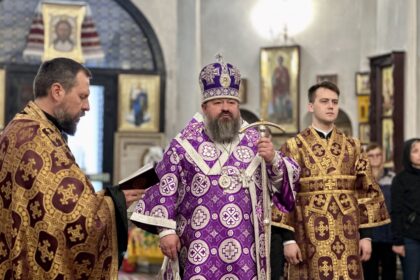 Його Преосвященству співслужило духовенство собору.