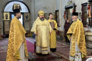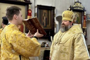 Його Преосвященству співслужило духовенство собору.