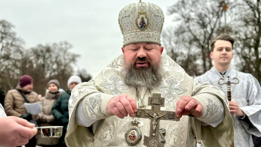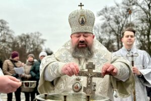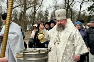 Наприкінці відправи єпископ Антоній звершив чин великого освячення води та окропив нею вірян.