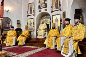 Його Преосвященству співслужило духовенство собору.