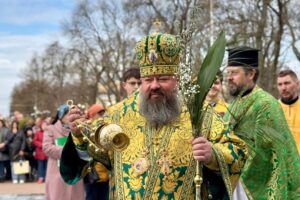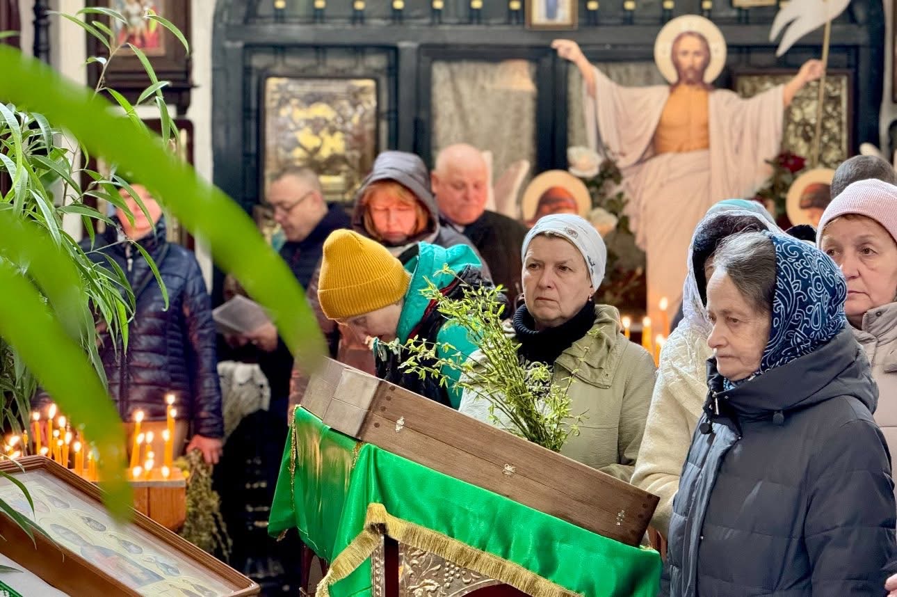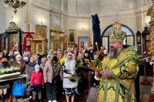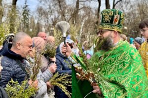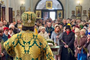 На завершення урочистого богослужіння єпископ Антоній окропив гілля верби та присутніх освяченою водою.