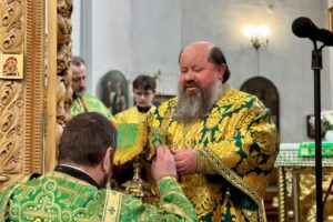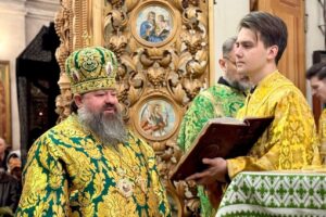 На малому вході єпископ Антоній, з благословення Блаженнійшого Митрополита Київського і всієї України Епіфанія, возвів у сан протоієрея клірика кафедрального собору – ієрея Петра Олекшія.