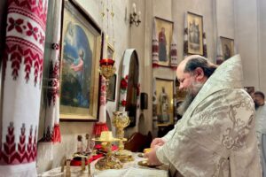 Під час богослужіння лунали молитовні прохання за воїнів, які захищають Україну, за владу і наш народ та за спокій душ усіх полеглих оборонців Батьківщини й мирних жителів.