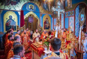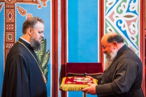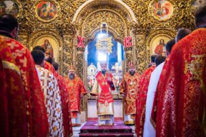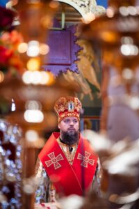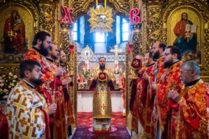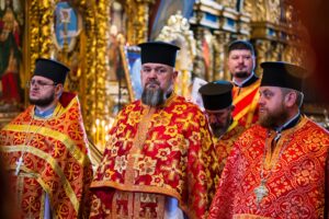 Наприкінці богослужіння духовенство та віряни вітали намісника монастиря із 45-річчям від Дня народження.