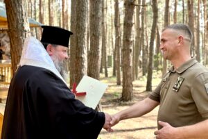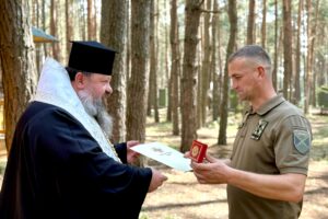 Після відправи владика, з благословення Блаженнійшого Митрополита Київського і всієї України Епіфанія, відзначив меценатів та військовослужбовців, які долучилися до будівництва каплиці.