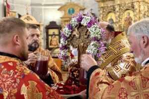 Під час великого славослів’я єпископ Антоній виніс святе Древо на середину храму, де було звершено чин Воздвиження Чесного Хреста Господнього.
