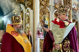 На завершення богослужіння єпископ Антоній виголосив проповідь, у якій привітав громаду із престольним святом, а також – протоієрея Олега Сіренка із Днем тезоіменитства та старосту храму Василя Федорчука із Днем народження. У свою чергу, отець-настоятель подякував архіпастирю за візит та спільну молитву.