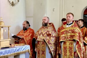 Архіпастирю співслужили секретар Чернігівської єпархії протоієрей Роман Кіник, настоятель храму протоієрей Віталій Юрочко, місцеве духовенство та гості у священному сані.