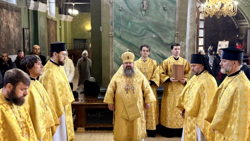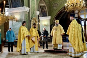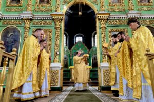 Архіпастирю співслужило духовенство собору.