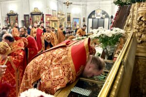 Напередодні дня памʼяті святої великомучениці Катерини та преподобного Меркурія Чернігівського, ігумена Бригинського, 23 листопада 2025 року, у кафедральному Катерининському соборі було звершено урочисте Всенічне Бдіння, яке очолив митрополит Вінницький і Барський Симеон.