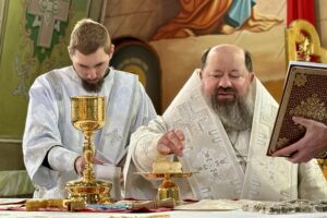 Його Преосвященству співслужило духовенство собору.